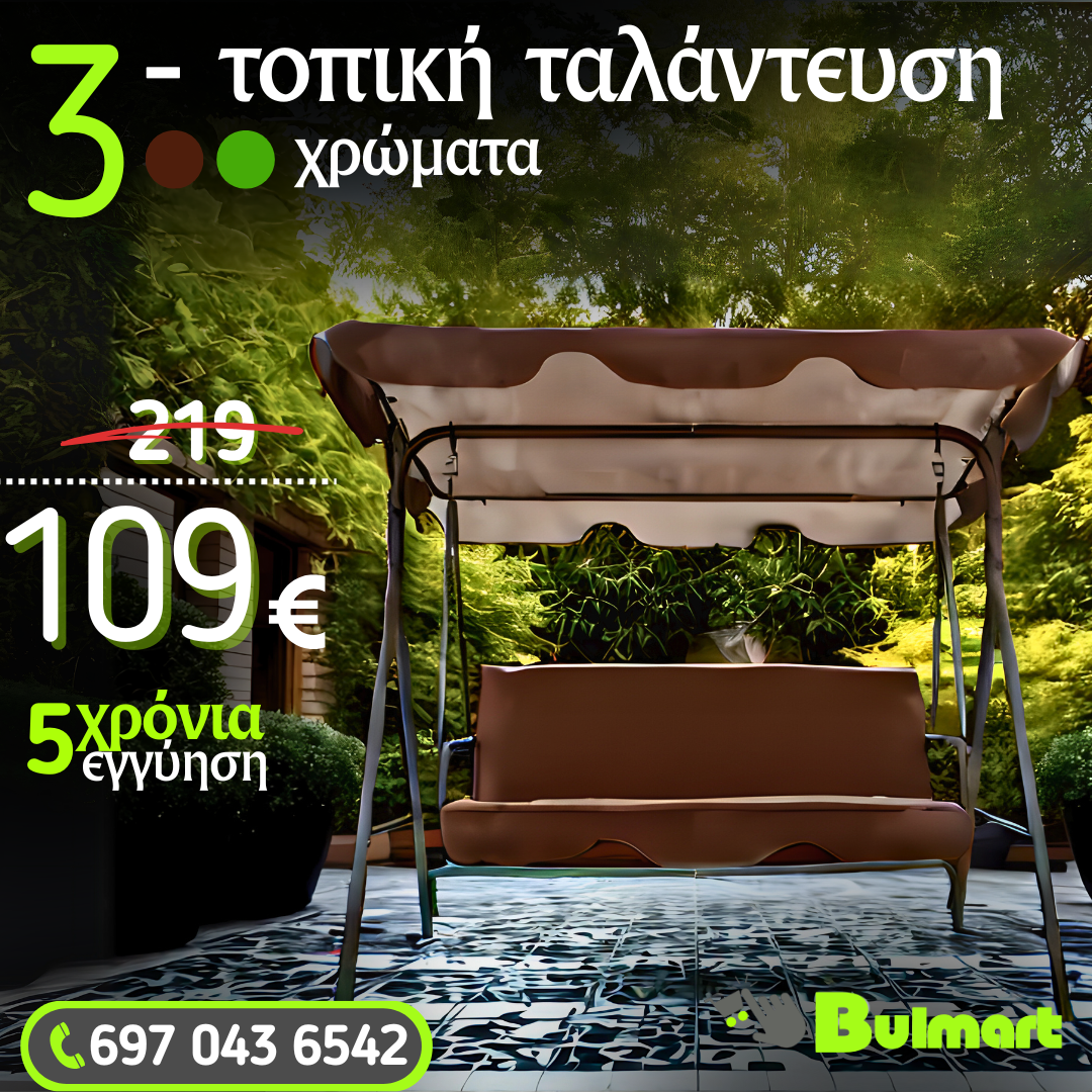 ✨ Ανακαλύψτε τη ζεστασιά και την άνεση με την τριθέσια κηπουρική κούνια μας με σκίαστρο!