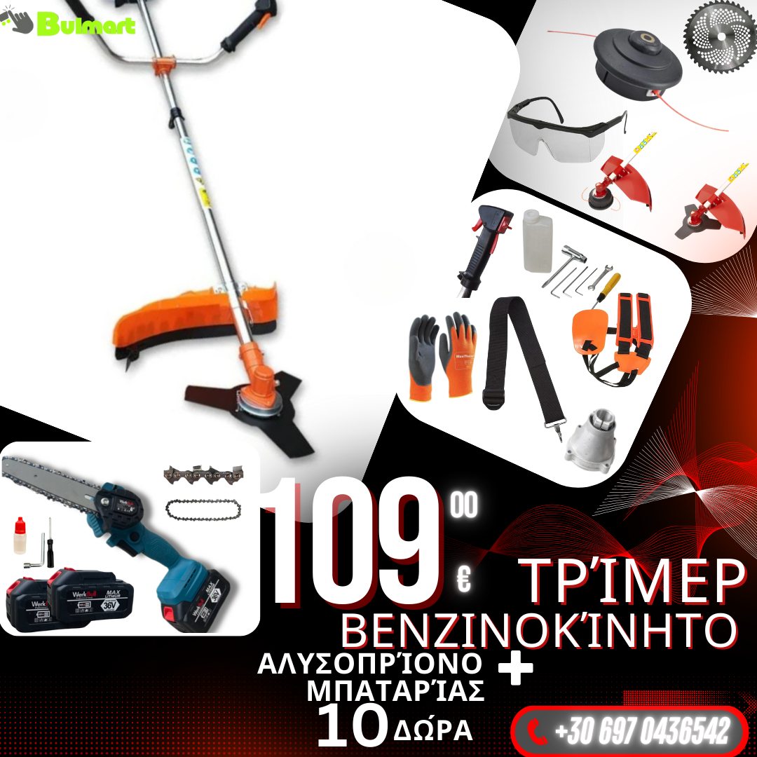 Γερμανικό βενζινοκίνητο χορτοκοπτικό WerkBull με 10 δώρα + WerkBull Mini Lopper με δύο μπαταρίες