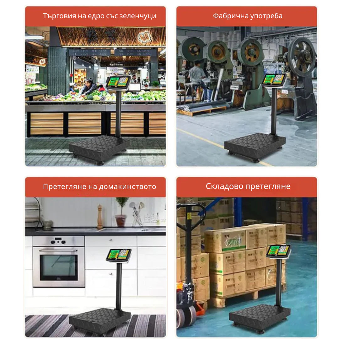 Η Εμπορική Ηλεκτρονική Ζυγαριά έως 150 κιλά είναι μια ηλεκτρική συσκευή μέτρησης υψηλής ακρίβειας, που αναπτύχθηκε και κατασκευάστηκε υπό τις συνθήκες ενός λειτουργικού Συστήματος Διαχείρισης Ποιότητας, σύμφωνα με τις απαιτήσεις του προτύπου. Η ζυγαριά είναι εξοπλισμένη με ενσωματωμένη μπαταρία. Η ηλεκτρονική ζυγαριά πλατφόρμας έως 150 κιλά είναι εξοπλισμένη με μεγάλη ηλεκτρονική οθόνη με δικό της οπίσθιο φωτισμό, λειτουργία υπολογισμού τιμής.